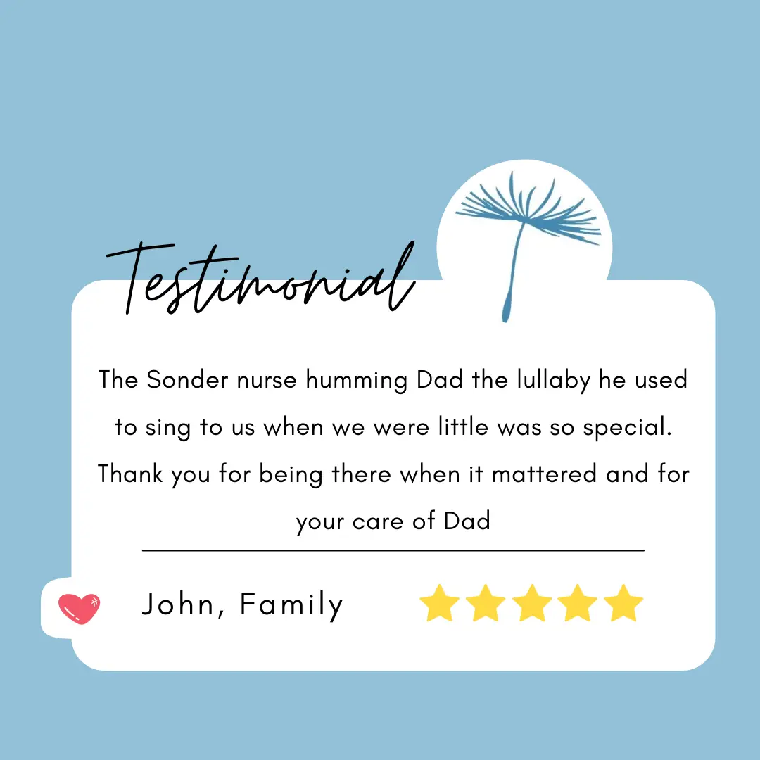 The Sonder Hospice team’s expertise in managing symptoms, advanced illnesses and neurologic diseases helps avoid the hospital and removes the caregiver burden of trying to manage a loved one’s health. This allows the patient to live their lives in the comfort of their home and provides peace of mind for caregivers and families.